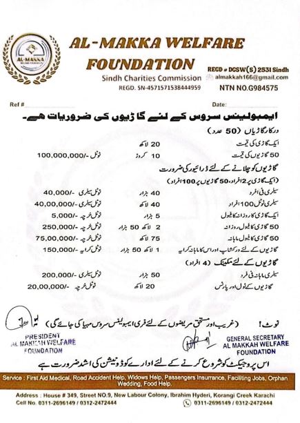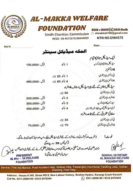 Founded with a vision to serve humanity, Al Makka Welfare Foundation is a Professional-based NGO working tirelessly to bring positive change to society. We provide free medical care, medicines, ambulance services, and financial assistance to those in need. Our foundation also supports education, women empowerment, and senior citizens through various welfare programs.